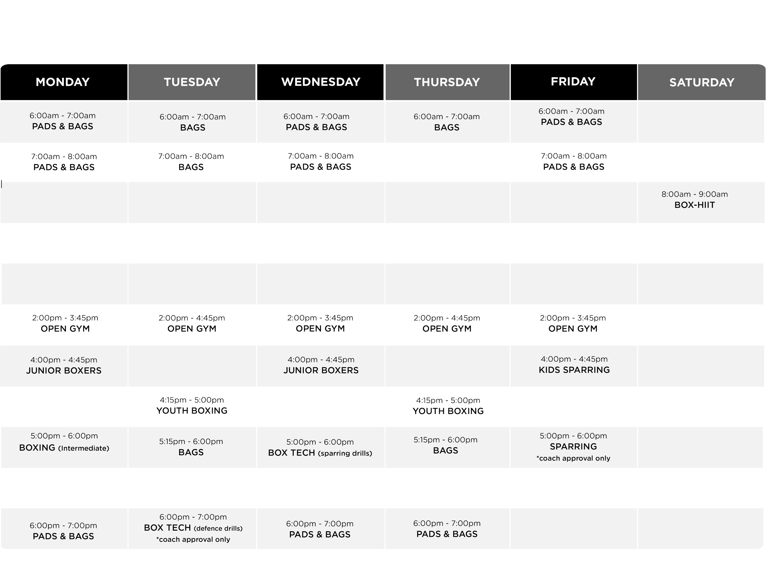 Gloves are available to borrow, however bring your own if able to. Hand wraps available to purchase at the gym.